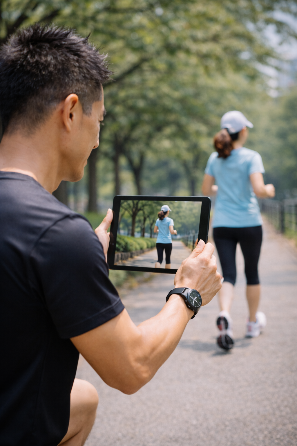 感覚ではなく、“見てわかる”フォーム改善。iPadによる動画撮影で、あなたの走りをその場で可視化します。横・後方から細かく分析し、接地、姿勢、腕振り、骨盤の動きまでチェック。多くのランナーは自分のフォームを正確に把握できていません。「頑張っているのに伸びない」「怪我が続く」原因がフォームにあることも。動画で改善点を明確にし、効率的でケガをしにくい走りへ導きます。感覚任せではない、根拠ある改善を提供します。